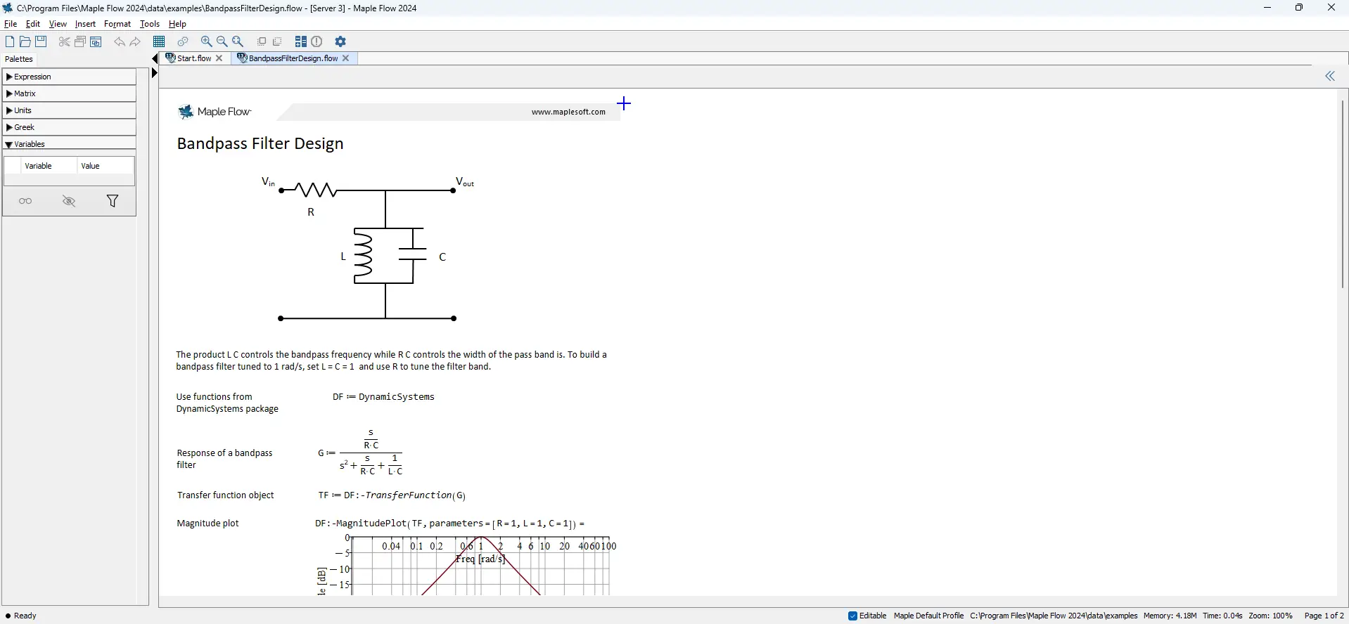 Описание Maplesoft Maple Flow