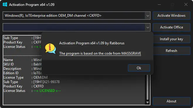 Activation Program — это утилита, позволяющая изменять состояние лицензирования Windows на уровне локального хранилища без взаимодействия с серверами Microsoft. Основной принцип работы заключается в подмене записей в защищённом хранилище системы, что создаёт видимость официальной активации. Программа поддерживает как постоянные методы, такие как ZeroCID, так и долгосрочные решения вроде KMS4k, обеспечивающего срок действия более 4000 лет. Поддержка осуществляется для всех актуальных версий ОС, включая Windows 10 и Windows 11, а также серверные редакции, начиная с 2012 R2.