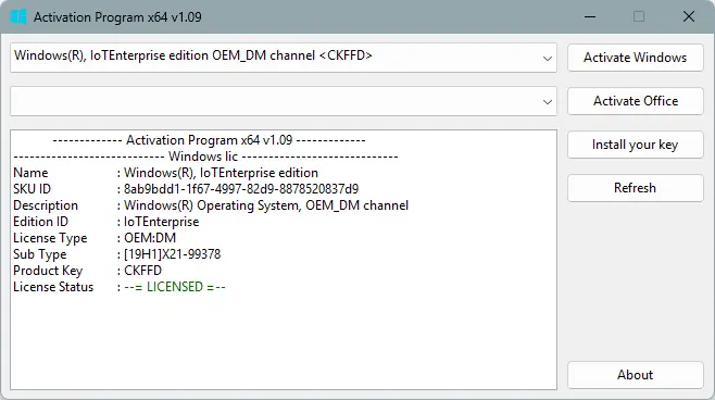 Программа Activation Program предназначена для локальной модификации состояния лицензионной активации в операционных системах Windows. Решение работает без подключения к интернету и позволяет изменять данные в доверенном хранилище системы, имитируя успешную активацию. Поддерживает широкий спектр редакций, включая legacy-версии, такие как Windows 7 с ESU-обновлениями. Инструмент не затрагивает Office-продукты и ориентирован исключительно на компоненты spp. Работает с методами ZeroCID, KMS4k, AVMA4k и другими встроенными механизмами.