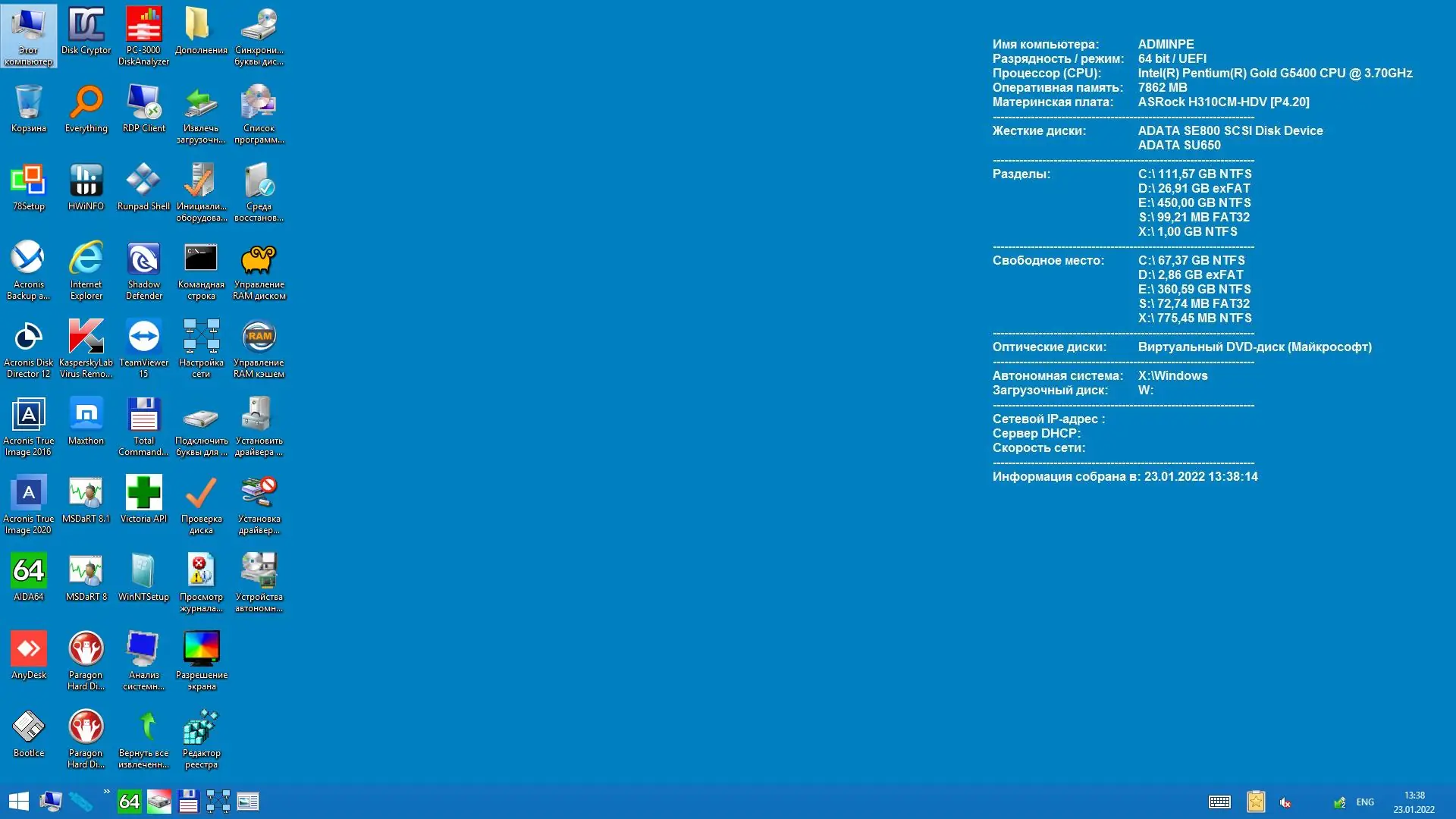 AdminPE представляет собой функциональный загрузочный диск, построенный на ядре WinPE5 с элементами Windows 8.1, что обеспечивает высокую совместимость и стабильность при работе с современным оборудованием. Сборка ориентирована на системных администраторов и содержит все необходимые инструменты для комплексного обслуживания компьютеров без запуска основной операционной системы. Она позволяет решать задачи восстановления, диагностики и настройки даже в критических ситуациях, когда ОС не загружается. Особое внимание уделено поддержке современных интерфейсов, включая USB 3.0, NVMe, RAID-массивы и диски с разметкой GPT.