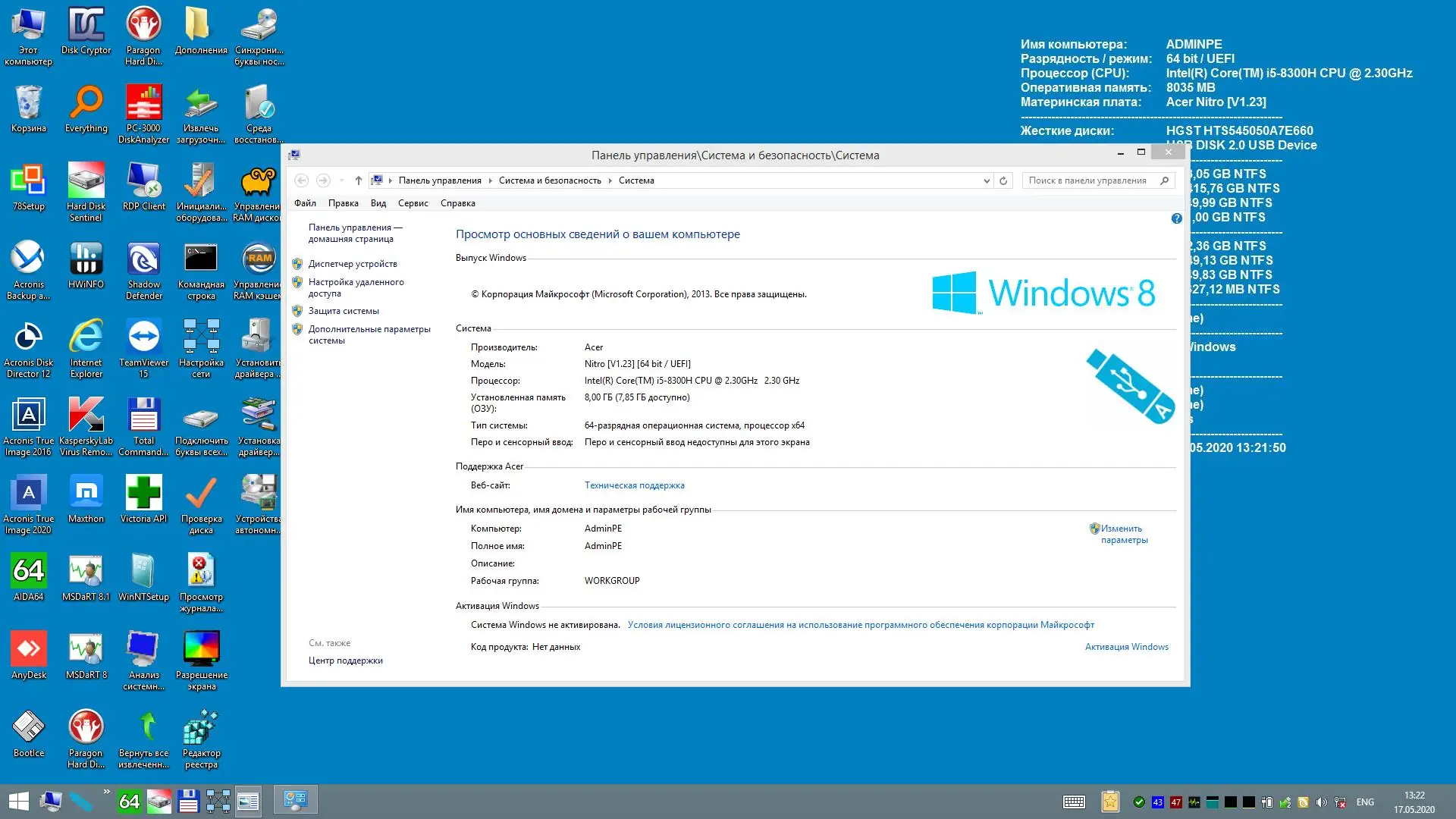 AdminPE — это универсальный загрузочный диск или флешка для системного администрирования, созданный на базе WinPE5 с поддержкой Windows 8.1. Решение предназначено для автономной работы с операционной системой, диагностики оборудования, восстановления данных, настройки загрузки и борьбы с вредоносным ПО. Сборка поддерживает современные стандарты, включая UEFI, GPT, NVMe и USB 3.0, что делает её совместимой с широким спектром устройств — от старых ПК до новых планшетов и серверов. В комплекте более сотни утилит для резервного копирования, тестирования, восстановления паролей и удалённого доступа.