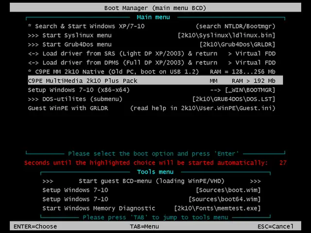 C9PE — это универсальный мультизагрузочный диск для системных администраторов и специалистов по восстановлению данных, построенный на базе WinPE с ядром Windows 2003 Server. Сборка поддерживает запуск с CD/DVD, USB Flash, USB-HDD и обычного жёсткого диска, включает в себя широкий спектр утилит для диагностики, обслуживания и ремонта компьютеров. В составе — инструменты для установки операционных систем, резервного копирования, восстановления данных, тестирования оборудования и удаления вредоносного ПО. Используются современные загрузчики BOOTMGR, Isolinux/Syslinux и Grub4Dos, обеспечивая совместимость с различными конфигурациями аппаратного обеспечения. Диск также поддерживает работу в сети и воспроизведение мультимедиа, что делает его незаменимым при комплексном обслуживании ПК.