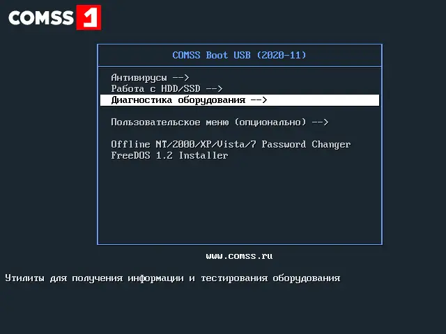 COMSS Boot USB объединяет мощные инструменты в одном образе, что делает его незаменимым при комплексной диагностике и ремонте компьютеров.
