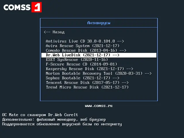 COMSS Boot USB представляет собой полнофункциональный Live-дистрибутив, созданный на базе свободного программного обеспечения. Он предназначен для комплексной диагностики и лечения заражённых систем, а также для работы с аппаратной частью компьютера. Образ включает в себя широкий набор утилит, охватывающих антивирусную безопасность, управление разделами дисков, тестирование оперативной памяти и диагностику жёстких дисков. Система не требует установки и запускается напрямую с USB-носителя, что делает её незаменимой в условиях сбоев операционной системы.