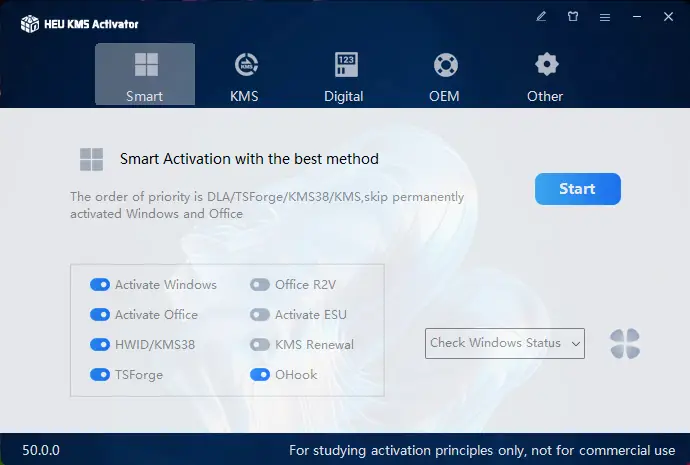 - Поддержка активации Windows и Office через KMS, цифровую лицензию, KMS38 и OEM-методы