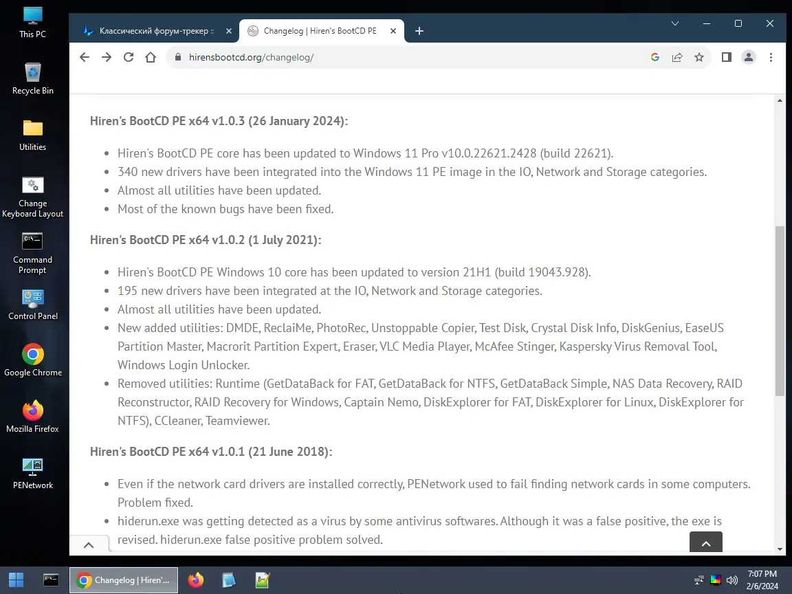 Hiren’s BootCD PE — это загрузочное решение на базе Windows 11 Pro 22H2, включающее обширный набор утилит для диагностики, восстановления и настройки компьютеров. Сборник ориентирован на специалистов и пользователей, сталкивающихся с неисправностями операционной системы, повреждением данных или проблемами с безопасностью. Все компоненты лицензионно чистые, бесплатные и обновлены до актуальных версий.