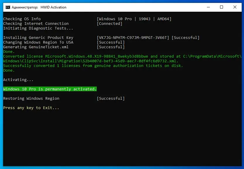 Использование программы не требует глубоких технических знаний. После запуска приложения, интерфейс отображает доступные режимы активации — автоматический и ручной. Пользователю достаточно выбрать нужный режим, нажать соответствующую кнопку и дождаться завершения процесса, который занимает в среднем от нескольких секунд до минуты. По окончании активации система покажет уведомление об успешном завершении, а в параметрах Windows отобразится статус «Активировано».
