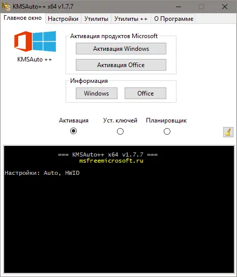 - Активация Windows и Office через встроенный KMS-сервис