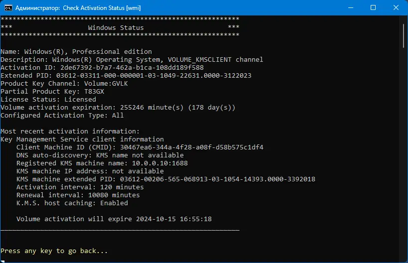 - Реализация Online KMS — имитация подключения к корпоративному серверу активации.