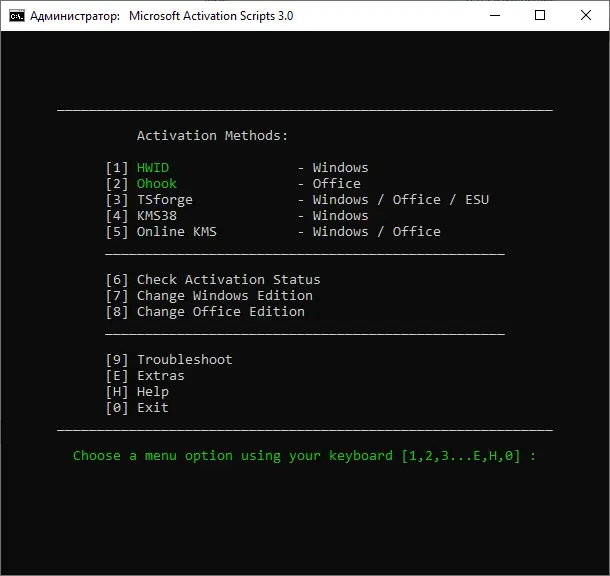 - Поддержка множества методов активации, включая HWID и KMS38, что позволяет выбрать оптимальный способ в зависимости от конфигурации системы.