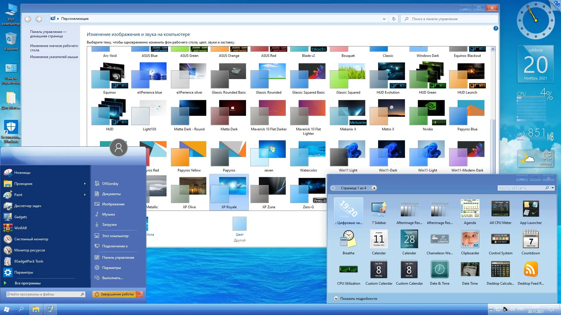 - Включены гаджеты рабочего стола через 8GadgetPack и дополнительные темы оформления для персонализации.