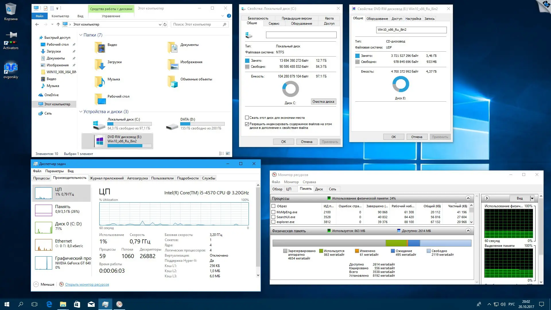 - Дополнительно включены темы, гаджеты, обои, активаторы и антишпионские утилиты, размещённые в отдельной папке на системном диске после установки