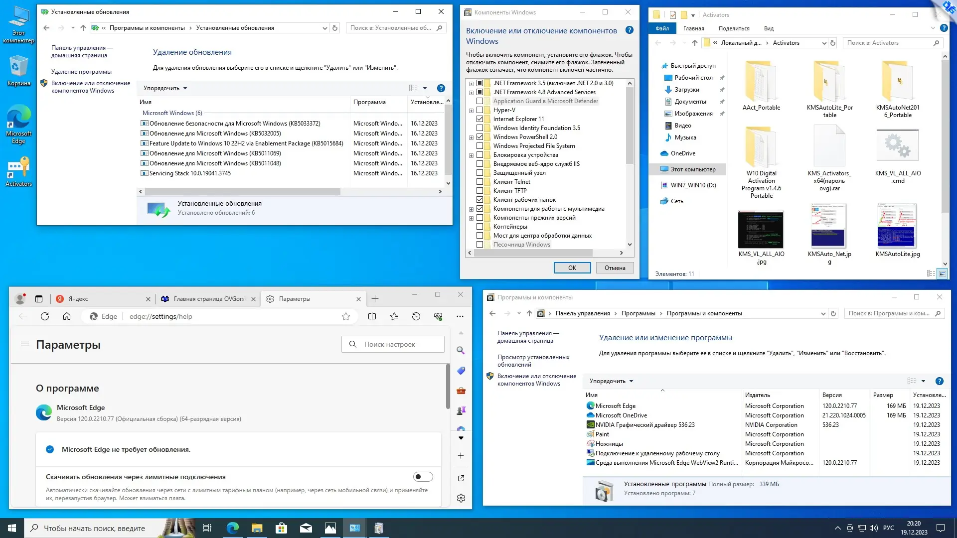 - Обновлён Microsoft Edge до версии 120.0.2210.77 на базе Chromium, улучшена производительность и безопасность браузера.