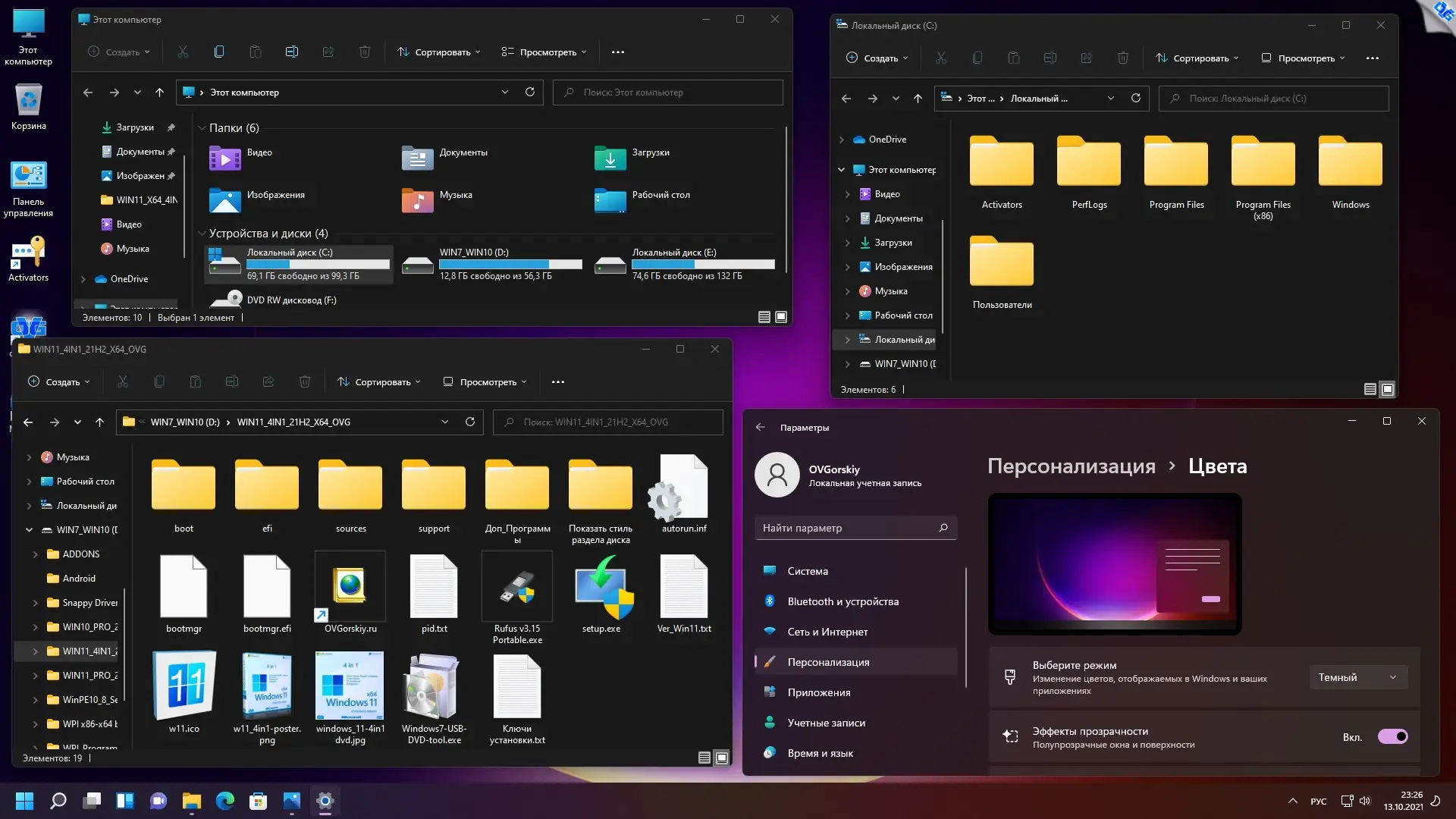 Обновлённые оригинальные русские образы операционной системы Windows 11 от Microsoft, собранные в единый x64-образ с помощью стандартных инструментов ADK и DISM. Включает редакции Home, Pro и Enterprise с интеграцией обновлений по октябрь 2021 года. Система остаётся практически неизменённой, без лишних модификаций, идеальна для пользователей, ценящих чистоту установки и желающих самостоятельно настроить окружение под свои задачи.