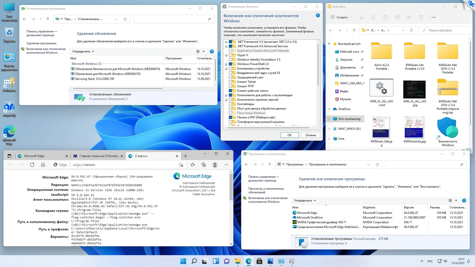 Операционная система Microsoft® Windows® 11 21H2 представлена в виде универсального образа, объединяющего четыре редакции: Core Home, Core Home Single Language, Professional и Enterprise. Сборка основана на официальных дистрибутивах MSDN, что гарантирует высокую степень совместимости и стабильности. Все изменения минимальны и касаются только интеграции накопительных обновлений по 12 октября 2021 года, включения компонента .NET Framework 3.5 и обновления браузера Microsoft Edge до версии 94.0.992.47 на базе Chromium. Это позволяет использовать современные веб-технологии и запускать приложения, зависящие от устаревших фреймворков.