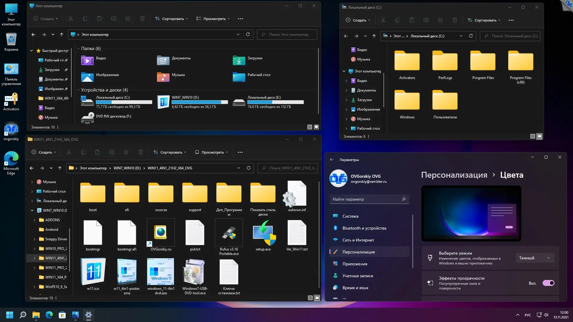 Обновлённые оригинальные русские образы Windows 11 от Microsoft, объединённые в один установочный ISO-файл, включают редакции Home, Pro и Enterprise. Сборка основана на официальных образах MSDN, содержит накопительные обновления по 10 ноября 2021 года, интегрированный Microsoft Edge 95 и инструменты восстановления MSDaRT и SmartFix. Установка возможна на неподдерживаемое оборудование благодаря обходу системных требований. Система остаётся практически неизменной, что делает её идеальной для пользователей, ценящих чистоту и контроль над настройками.