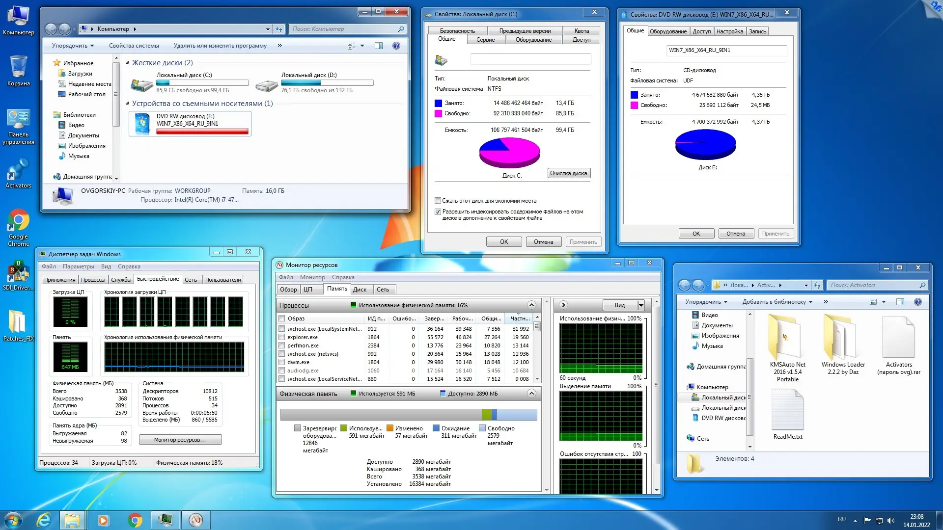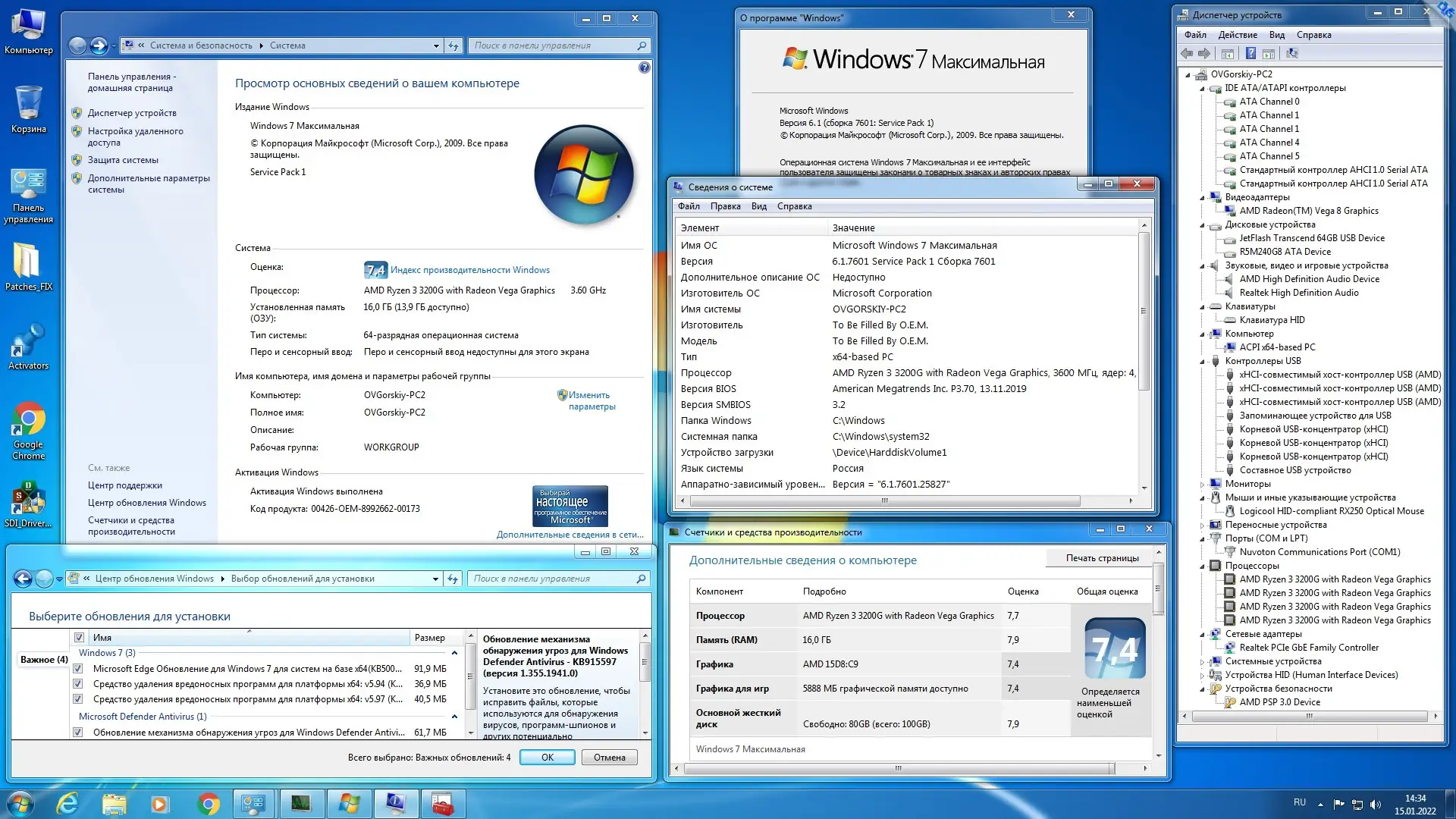 Обновлённые русские образы Windows 7 от Microsoft включают девять редакций на одном DVD: Starter, Home Basic, Home Premium, Professional и Ultimate для 32- и 64-битных систем. Сборка основана на официальных версиях MSDN, содержит интегрированные обновления по январь 2022 года, Internet Explorer 11, .NET Framework 4.8 и Google Chrome. Установка осуществляется вручную с загрузочного носителя, поддерживается установка на GPT-диски через UEFI. Система готова к использованию сразу после установки.