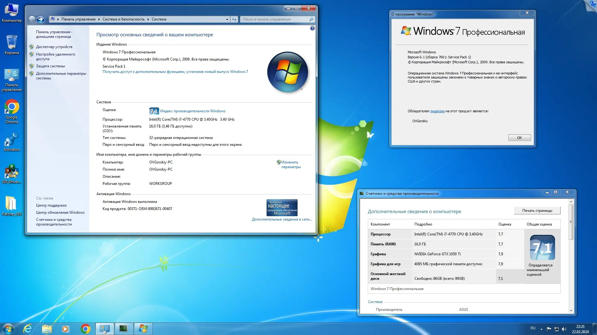- Система оптимизирована: отключены UAC, гибернация, телеметрия и предупреждения о завершении поддержки ОС