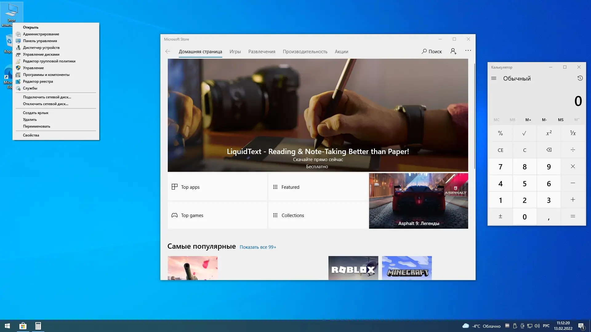 - Удалены модерн-приложения, кроме браузера Edge, Microsoft Store и Калькулятора, что снижает потребление памяти и исключает фоновые процессы