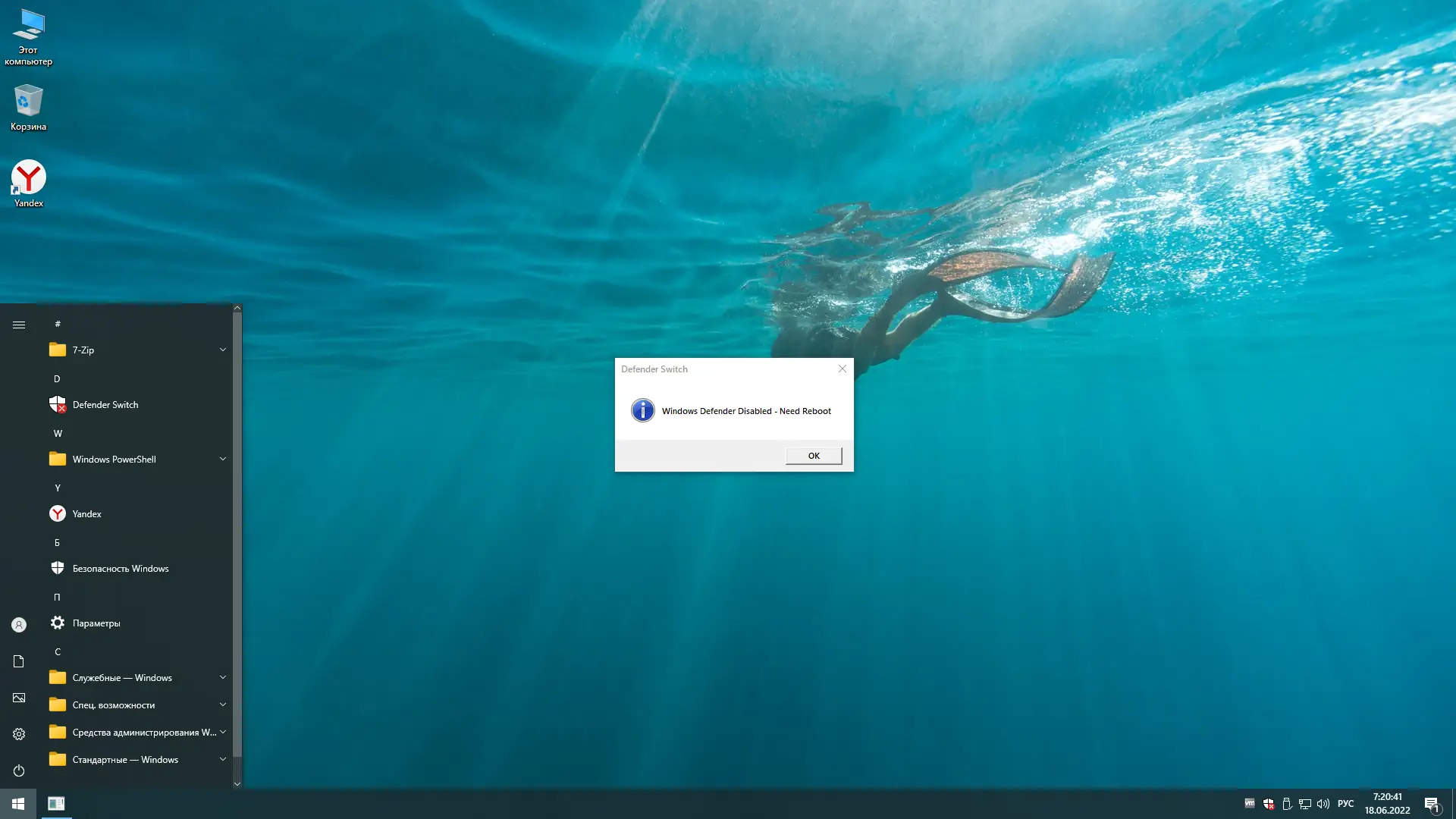 - Применены системные твики: отключение размытия на экране блокировки, отключение автоматической перезагрузки при BSOD, отключение фиксов Meltdown и Spectre