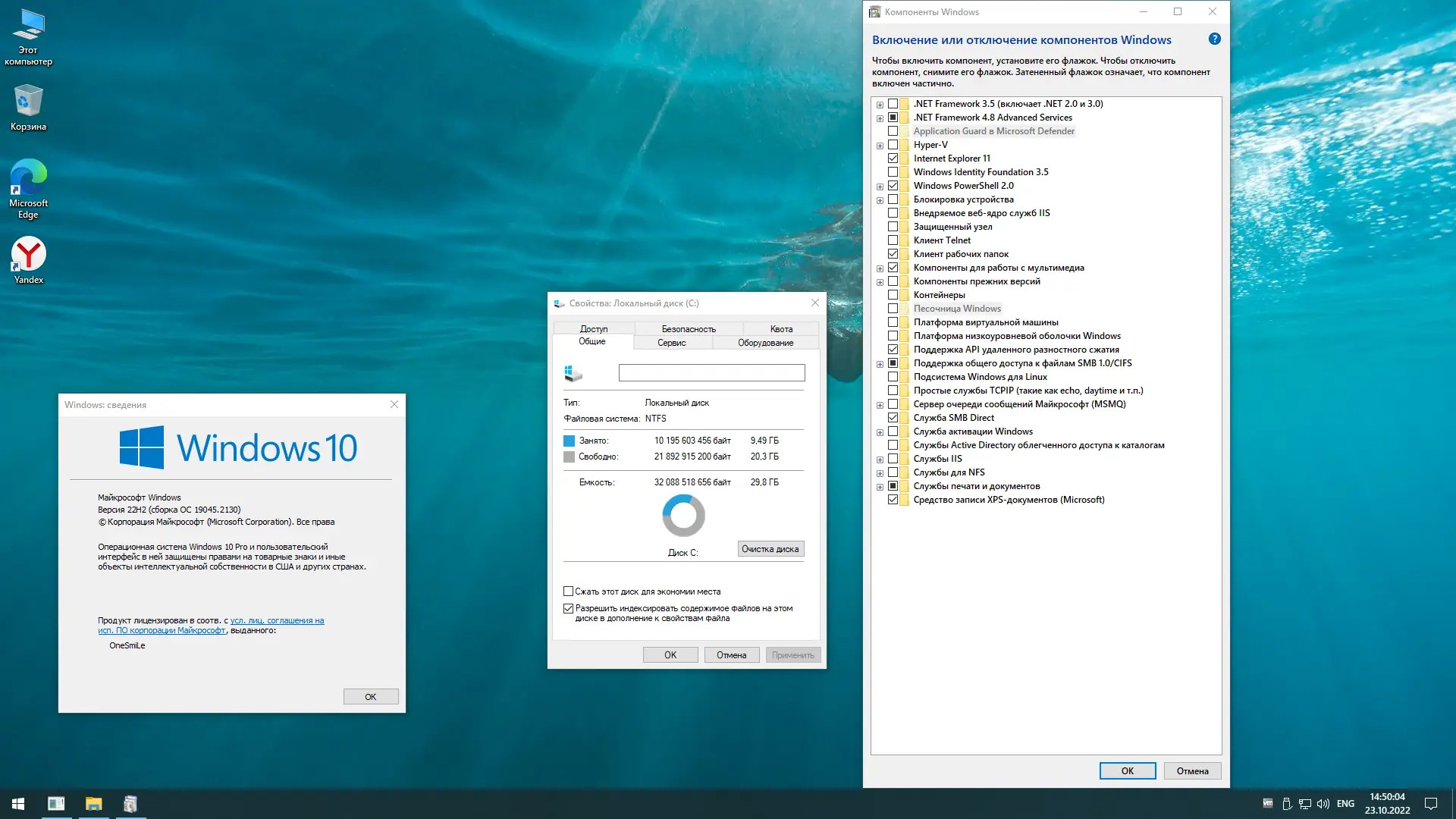 Сборка создана на основе официального образа ru-ru_windows_10_business_editions_version_22h2_x64_dvd_61849fe8 с глубокой оптимизацией компонентов. Удалены ненужные современные приложения, включая Cortana, OneDrive, ContentDeliveryManager и другие, что позволило снизить нагрузку на ресурсы компьютера и ускорить запуск системы. Образ упакован в формат ESD с использованием инструментов DISM, что обеспечивает высокую степень сжатия и целостность данных. Папки WinSxS очищены от резервных копий и кэша манифестов, что дополнительно экономит дисковое пространство.