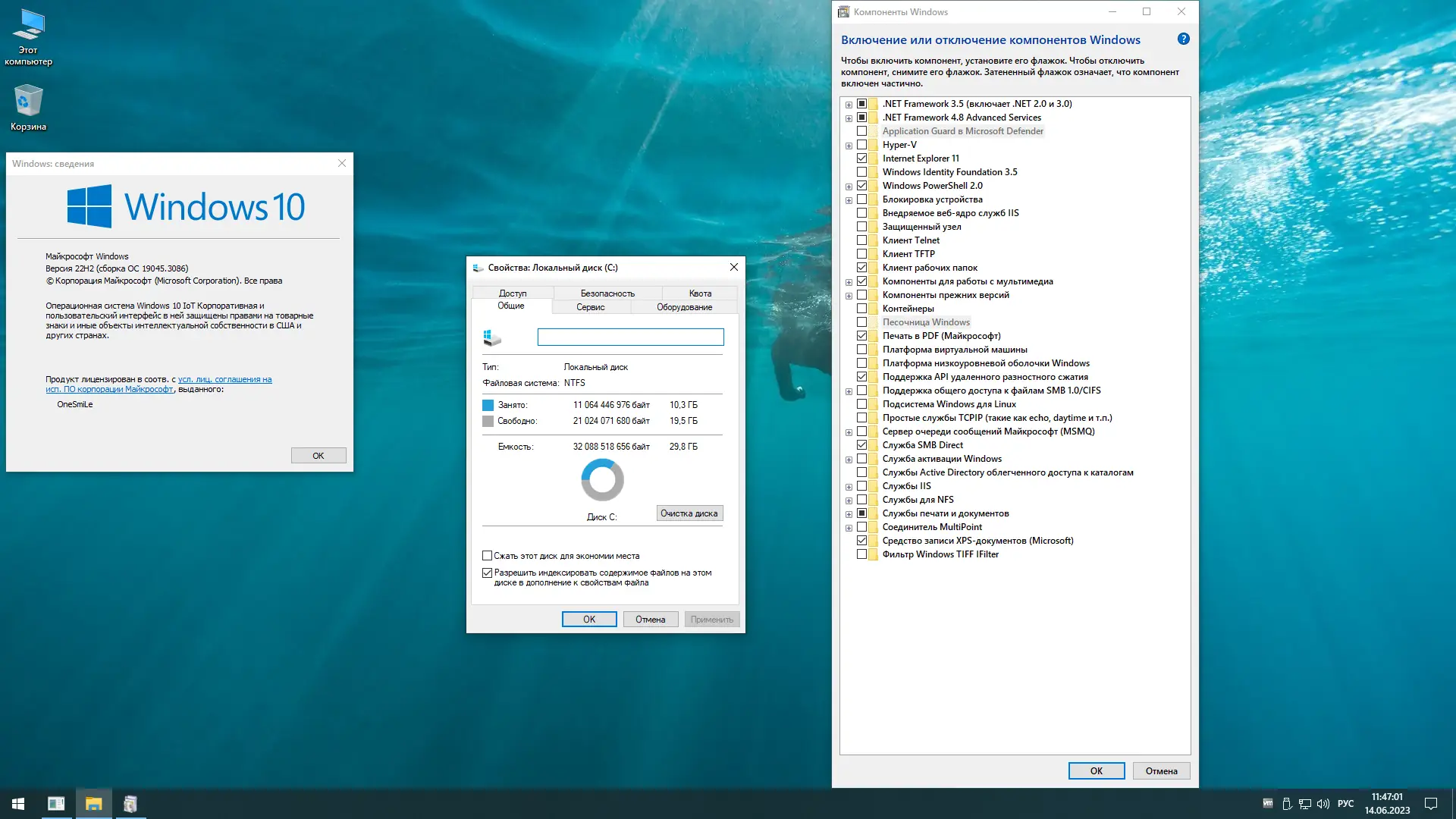 Сборка Windows 10 основана на официальном образе ru-ru_windows_10_business_editions_version_22h2_updated_may_2023_x64_dvd_21973db2. Удалены все мусорные приложения, отключена телеметрия, включены полезные твики для повышения производительности. Доступны три редакции: Home, Pro и IoT Enterprise. Подходит для установки на компьютер с целью получения чистой и оптимизированной системы.