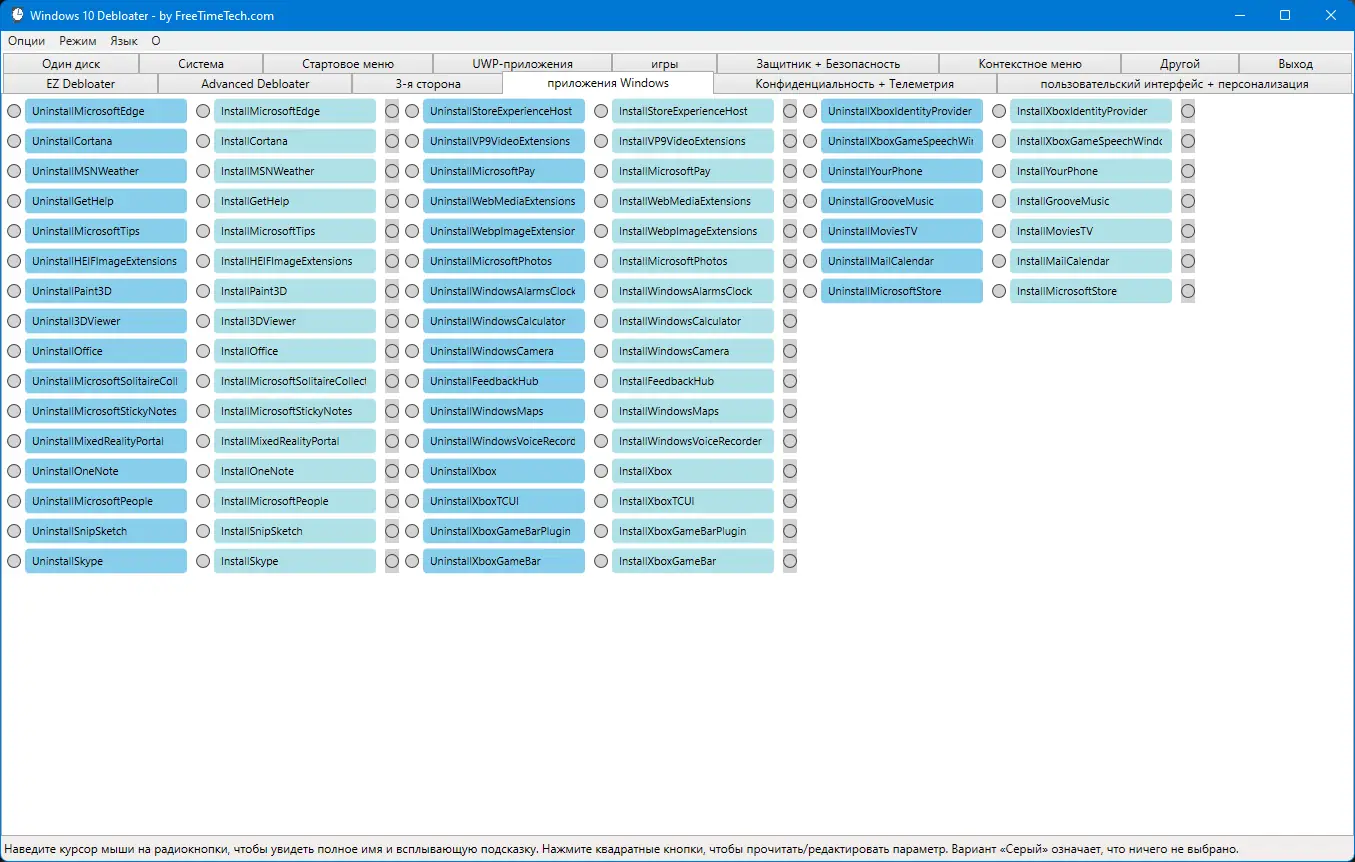 Debloater помогает превратить стандартную windows 10 в облегчённую и более приватную систему, свободную от ненужных компонентов.
