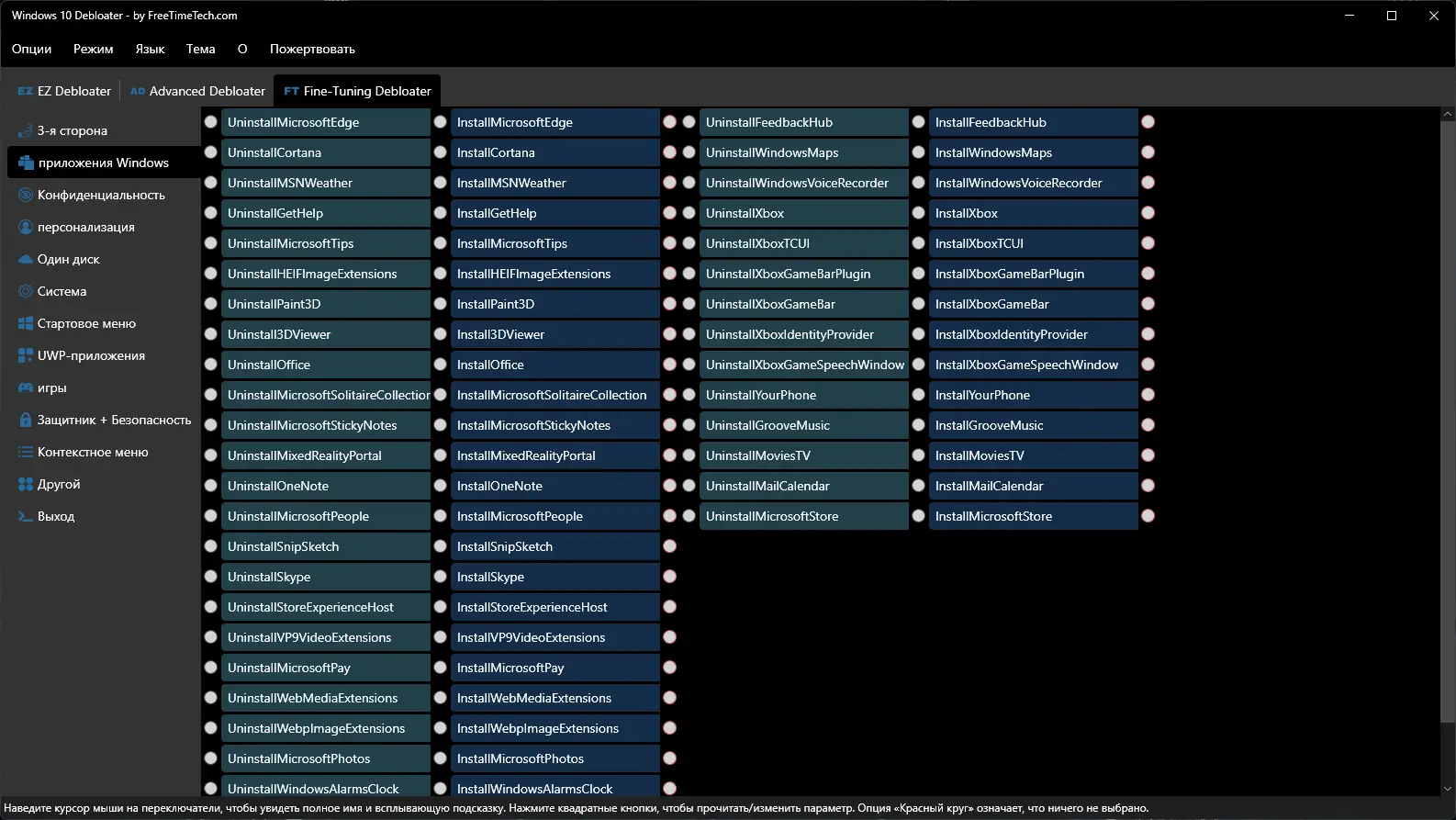 - Удаление предустановленных приложений, включая Microsoft Edge, OneDrive и News