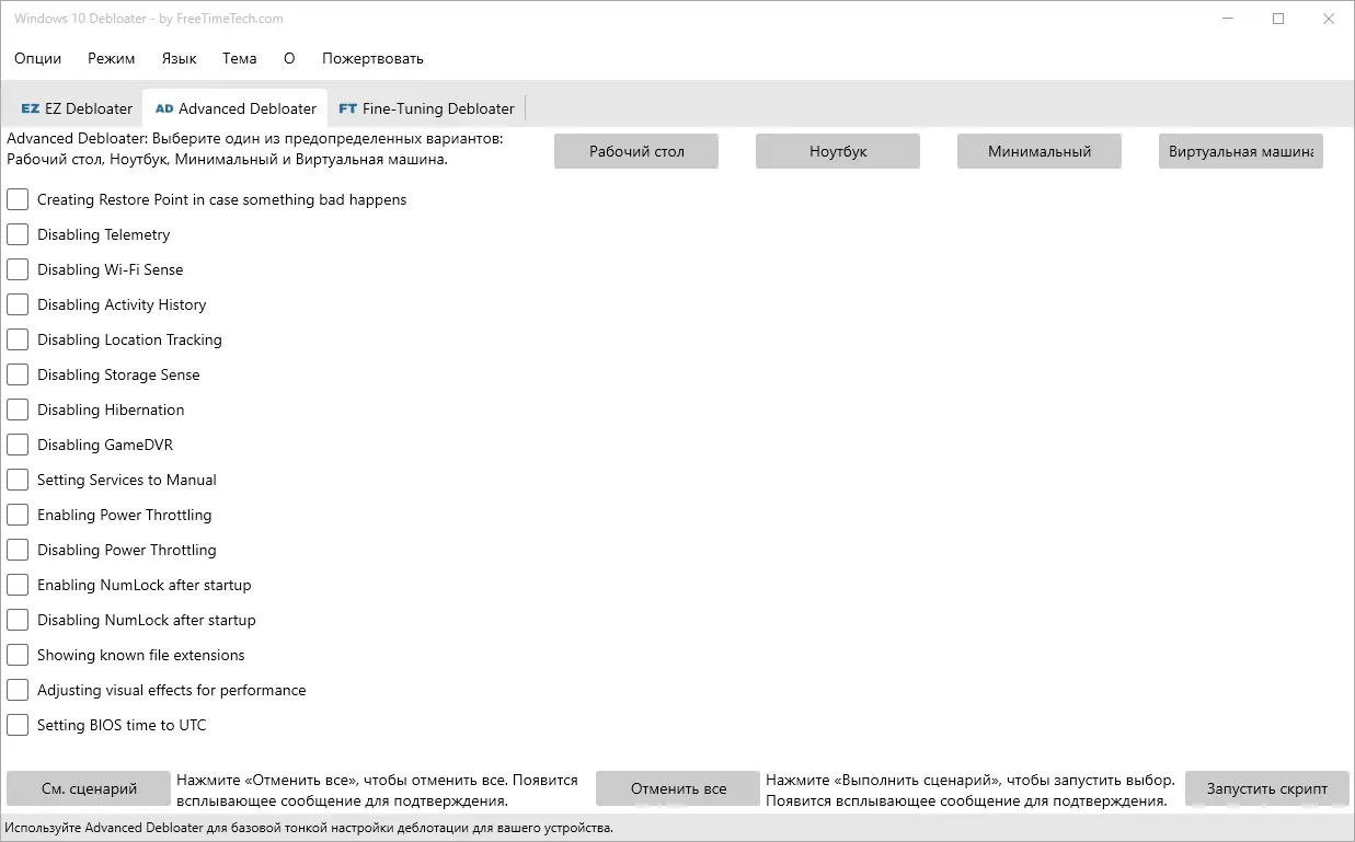 Windows 10 Debloater — это компактная утилита для глубокой настройки операционной системы, позволяющая удалять встроенные приложения, отключать телеметрию, оптимизировать параметры конфиденциальности и настраивать интерфейс по своему усмотрению. Программа основана на проверенных скриптах с открытым исходным кодом и не требует сложной настройки. Подходит как для опытных пользователей, так и для новичков, стремящихся получить чистую и быструю систему.