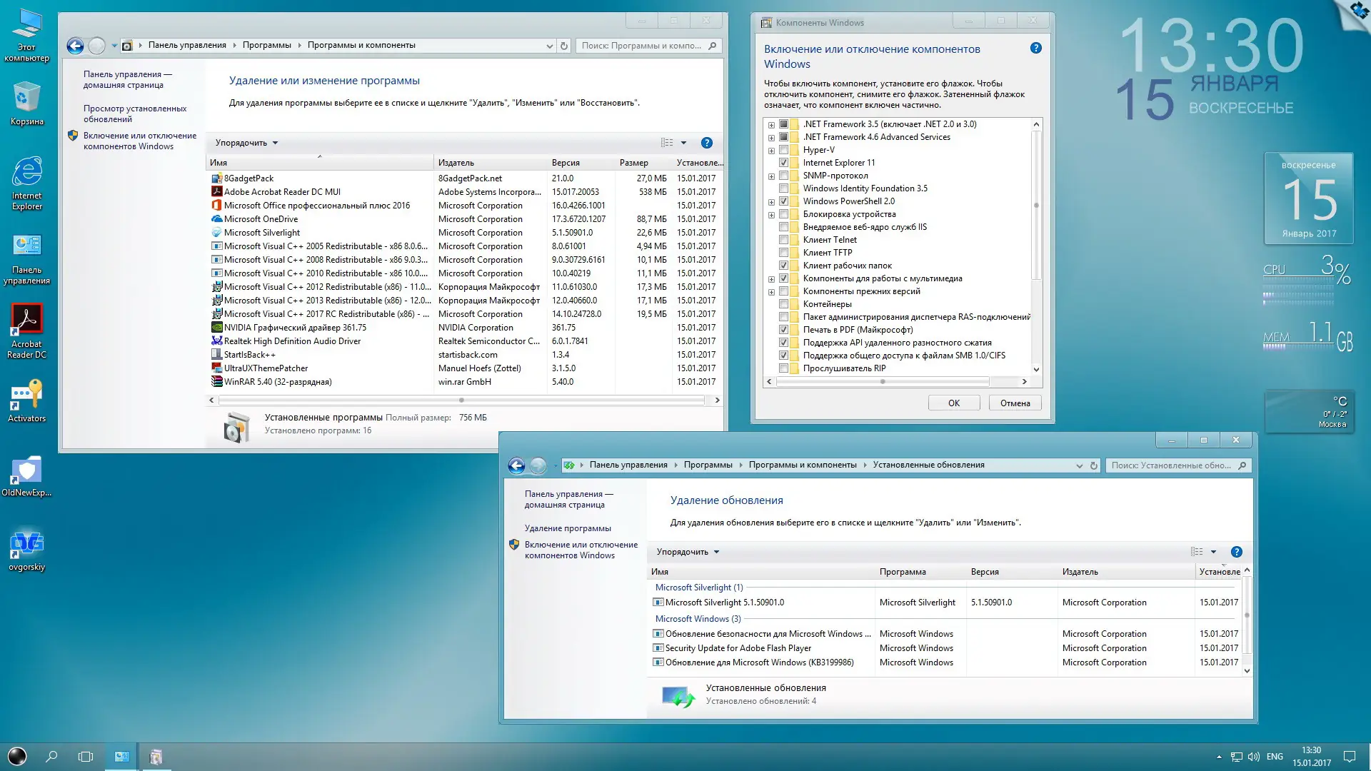 - Поддержка установки сторонних тем и гаджетов рабочего стола через UltraUXThemePatcher и 8GadgetPack