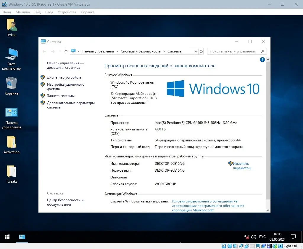 Установка системы осуществляется в полуавтоматическом режиме, при этом пользователю необходимо вручную ввести имя и выбрать параметры учётной записи. Рекомендуется отключить интернет на время установки, чтобы избежать автоматической активации или загрузки нежелательных компонентов. После завершения установки на рабочем столе будут доступны папки Activation и Tweaks, содержащие утилиты для активации и дополнительной настройки системы.