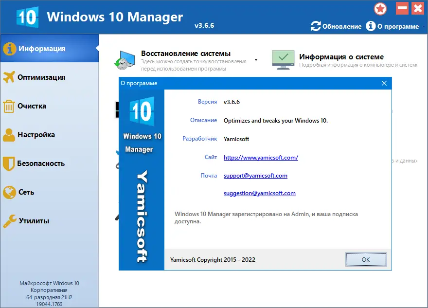 Windows 10 Manager совместим с 64-разрядными системами и оптимизирован под современное программное окружение.