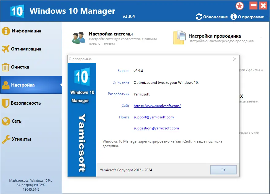 Windows 10 Manager — комплексная утилита для тонкой настройки, оптимизации и обслуживания операционной системы, объединяющая более сорока инструментов в едином интерфейсе. Программа позволяет ускорить работу системы, очистить реестр и диски, настроить параметры безопасности, персонализировать внешний вид и устранить типичные неполадки. Подходит как новичкам, так и опытным пользователям, стремящимся максимально эффективно использовать возможности microsoft windows 10.
