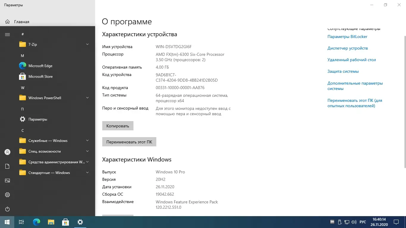 После установки операционная система готова к использованию без дополнительной настройки. Все основные функции, включая просмотр изображений через Windows PhotoViewer, работают из коробки. Автоматическая установка драйверов отключена, чтобы избежать конфликтов, но обновления можно устанавливать вручную через Центр обновления. В контекстное меню добавлены полезные команды: копирование и перемещение файлов в папку, что ускоряет работу с проводником. В меню «Этот компьютер» включены пункты администрирования, включая диспетчер устройств, редактор реестра и настройку системы через MSCONFIG, что упрощает доступ к инструментам диагностики. Активация выполняется автоматически с помощью AAct версии 4.0.0, расположенного в папке C:\Windows\AAct_Tools.