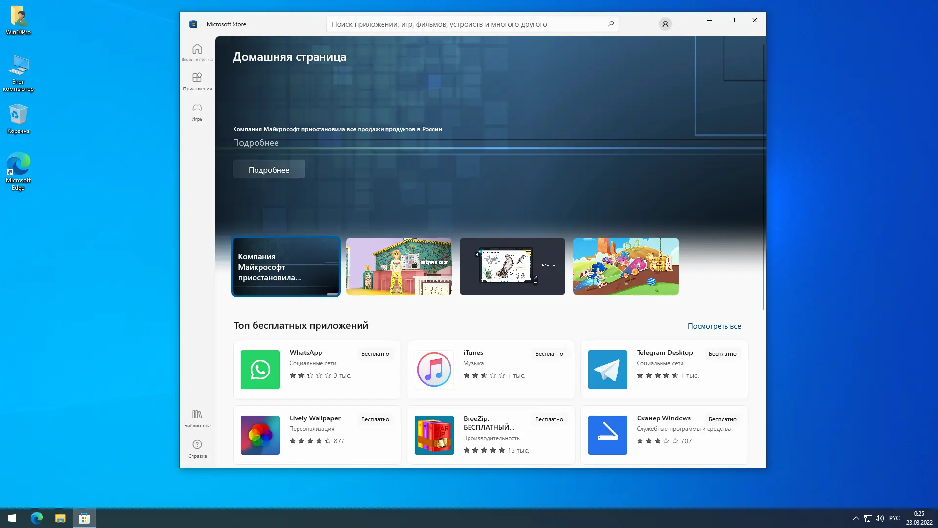 - Удалены OneDrive, Кортана, Xbox и другие ненужные приложения Metro, кроме базовых — Калькулятора и Microsoft Store
