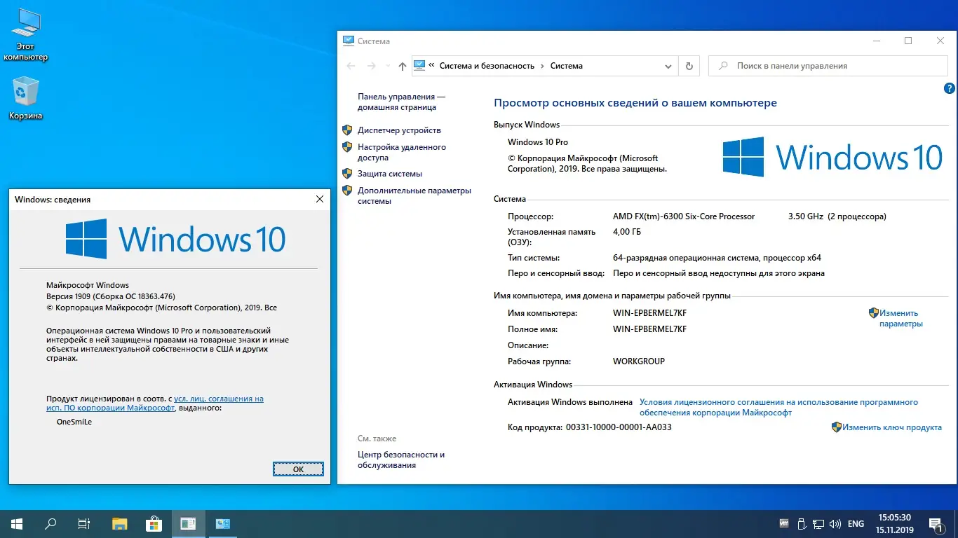 Сборка операционной системы создана на базе оригинального образа ru_windows_10_business_editions_version_1909_x64_dvd_675b5388 с сохранением ключевых функций и безопасности. Интегрированы все накопительные обновления по состоянию на 15.11.19, что гарантирует актуальность системы на момент установки. Все компоненты обработаны с помощью DISM, папки WinSxS очищены от резервных манифестов и кэша, что позволило уменьшить занимаемое место на диске без потери функциональности.