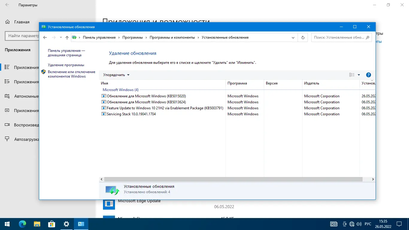 - Отключены избыточные компоненты, включая SMB-протокол и фоновые службы