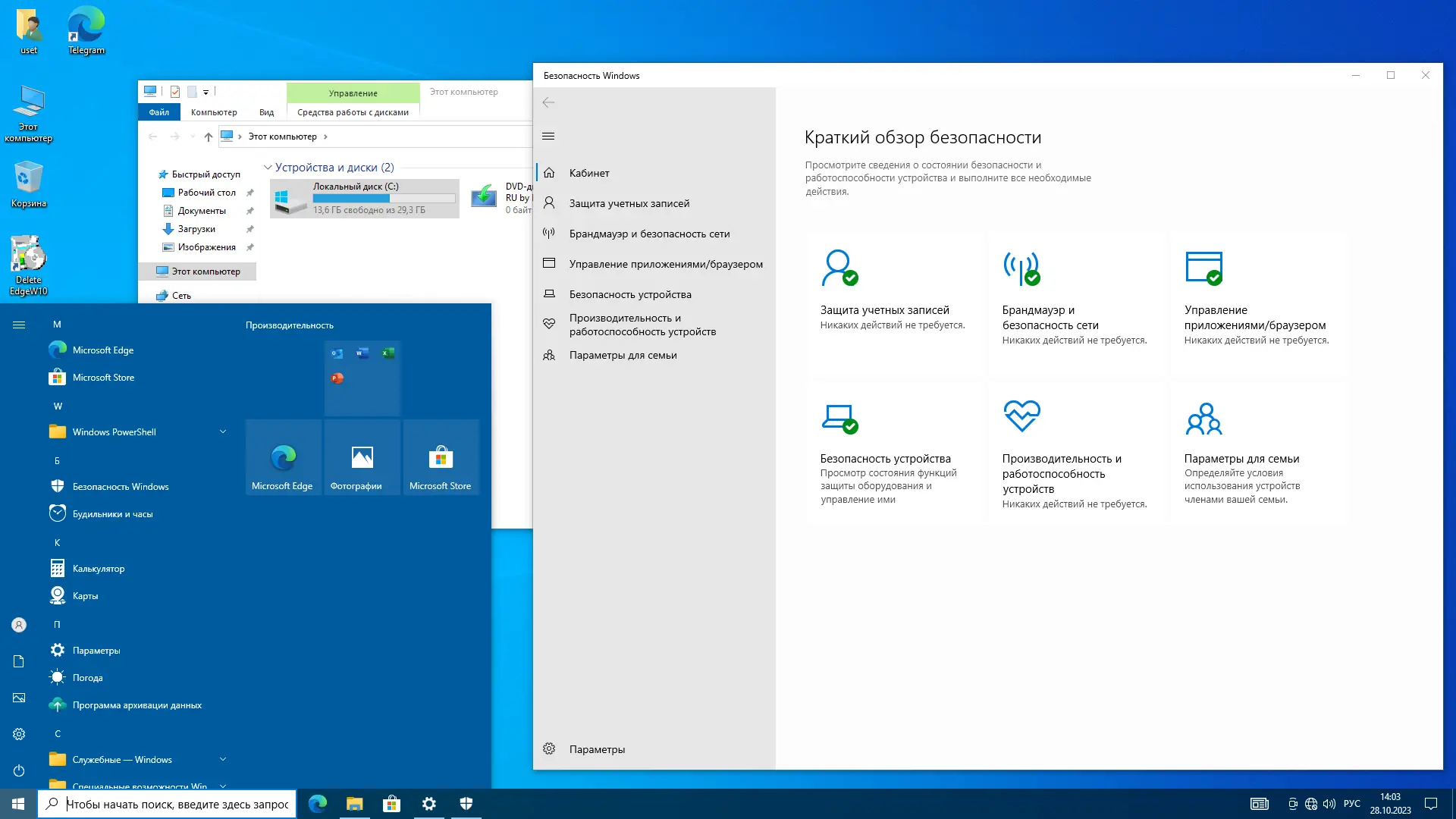 - Отключены компоненты телеметрии, SmartScreen и фоновые службы отчетности