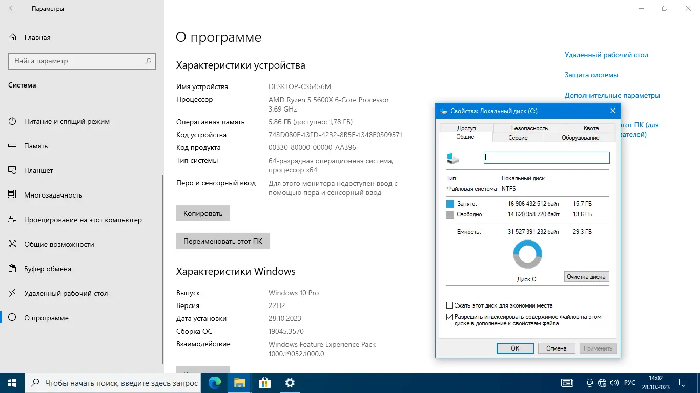 - Настроены параметры производительности и визуальных эффектов для быстрой работы