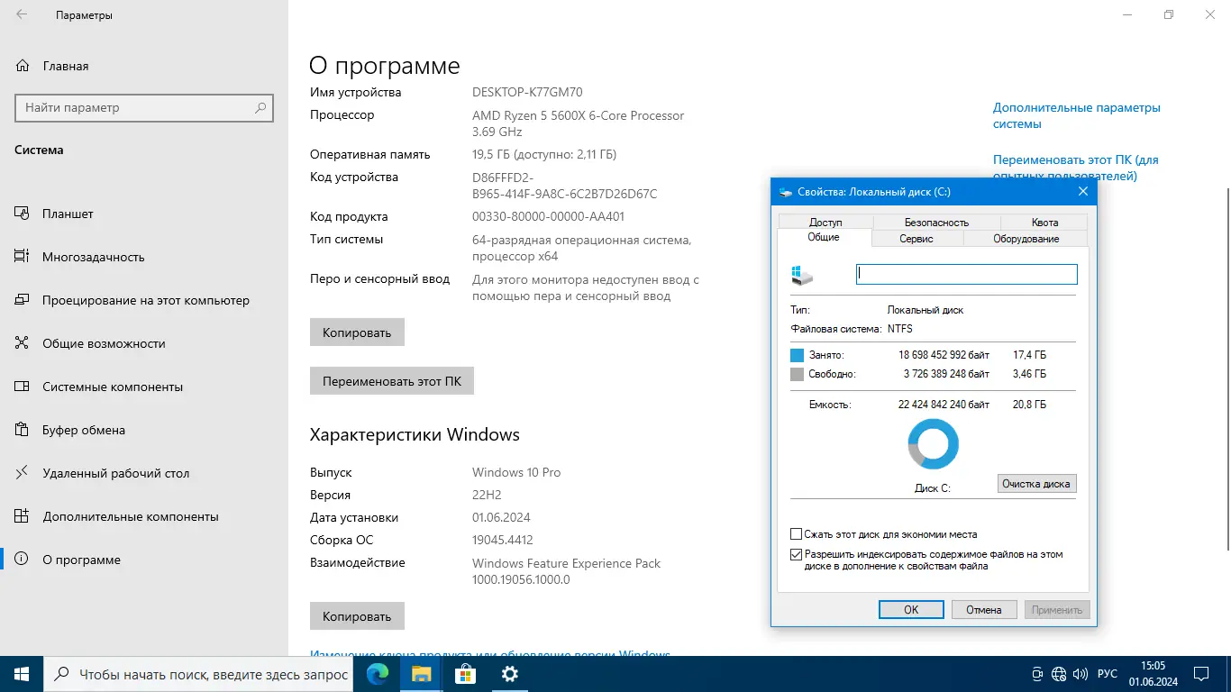 Операционная система Windows предоставляет стабильную и производительную среду для работы и повседневного использования. Сборка построена на базе лицензионного образа ru-ru_windows_10_consumer_editions_version_22h2_updated_may_2024_x64_dvd_49ddadb6.iso, что гарантирует совместимость и надежность. В систему включены все необходимые компоненты, включая Microsoft .NET Framework 3.5–4.8, обеспечивающие запуск большинства приложений и игр. Папка WinSxS была сжата, а резервные данные удалены, что позволило уменьшить занимаемое место на диске без потери функциональности.