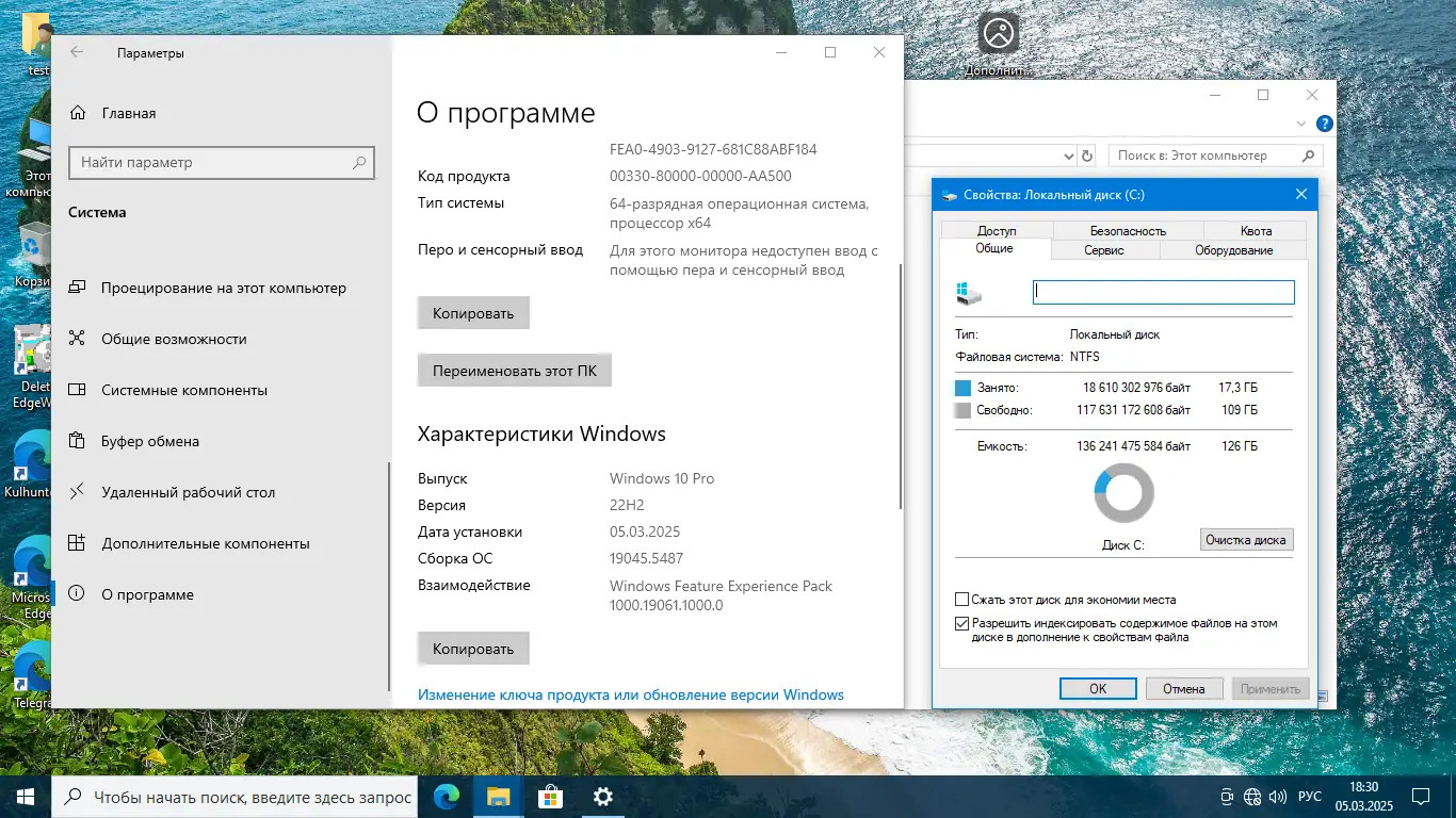 Модифицированная сборка операционной системы основана на официальном образе Windows 10 версии 22H2 с обновлениями от февраля 2025 года. Система оптимизирована для повышения производительности, включает интеграцию .NET Framework, отключение ненужных компонентов и изменение параметров интерфейса для удобства пользователей. Образ упакован в формат ESD, что уменьшает размер дистрибутива без потери качества.