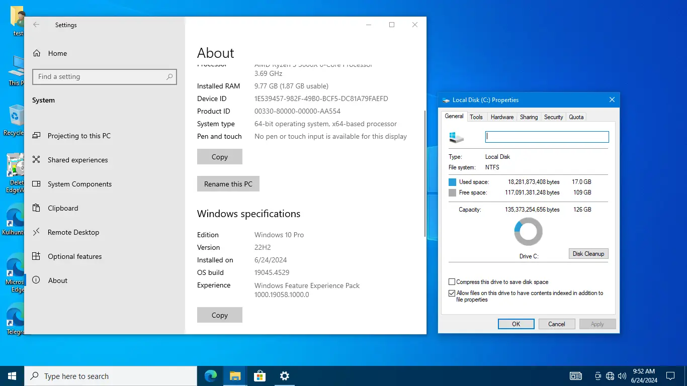 Сборка предлагает высокую степень кастомизации и оптимизации под нужды пользователя. Благодаря отключению ненужных функций и служб, система работает быстрее на слабых конфигурациях. Интерфейс адаптирован под привычный рабочий стол: скрыты библиотеки, избранное, съёмные устройства, добавлены значки «Мой компьютер» и «Корзина». Панель задач закреплена, проводник открывается с разделом «Этот компьютер», отображаются расширения файлов. В то же время, из-за глубокой модификации могут возникнуть сложности с обновлением через Центр обновления Windows, а также отсутствие некоторых компонентов, таких как Edge и SmartScreen, требует внимательного отношения к безопасности. Активация возможна как с помощью лицензионного ключа, так и через KMS-активаторы.