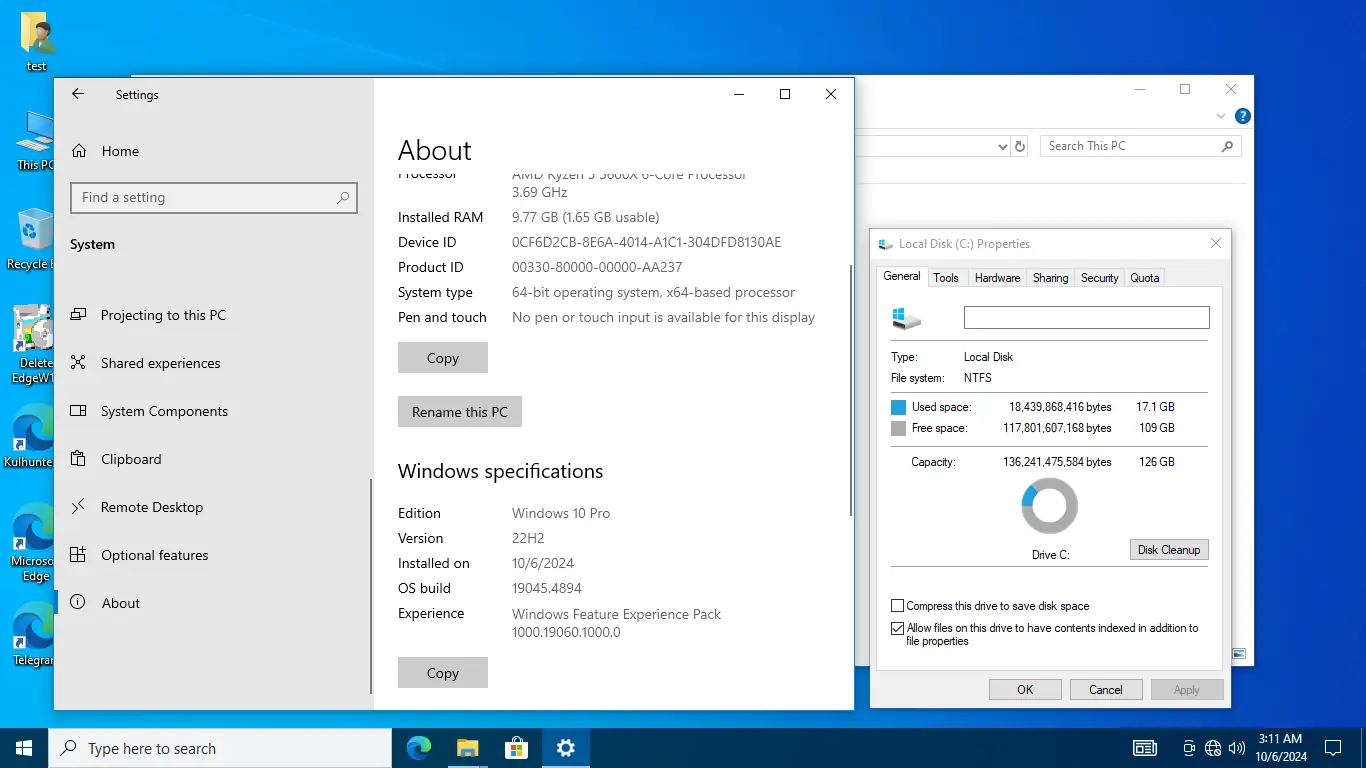 Сборка создана на базе официального дистрибутива Windows 10 версии 22H2 и включает в себя все актуальные обновления по состоянию на сентябрь 2024 года. Образ подготовлен с использованием технологий сжатия ESD, что позволило уменьшить объем дистрибутива без потери функциональности. В систему интегрирован .NET Framework 3.5–4.8, необходимый для запуска большинства современных приложений и игр. Удалены стандартные темы, папки для журналов и резервных копий, что освобождает место на диске и ускоряет работу. Система не проходила режим аудита, что гарантирует её чистоту и отсутствие скрытых изменений.