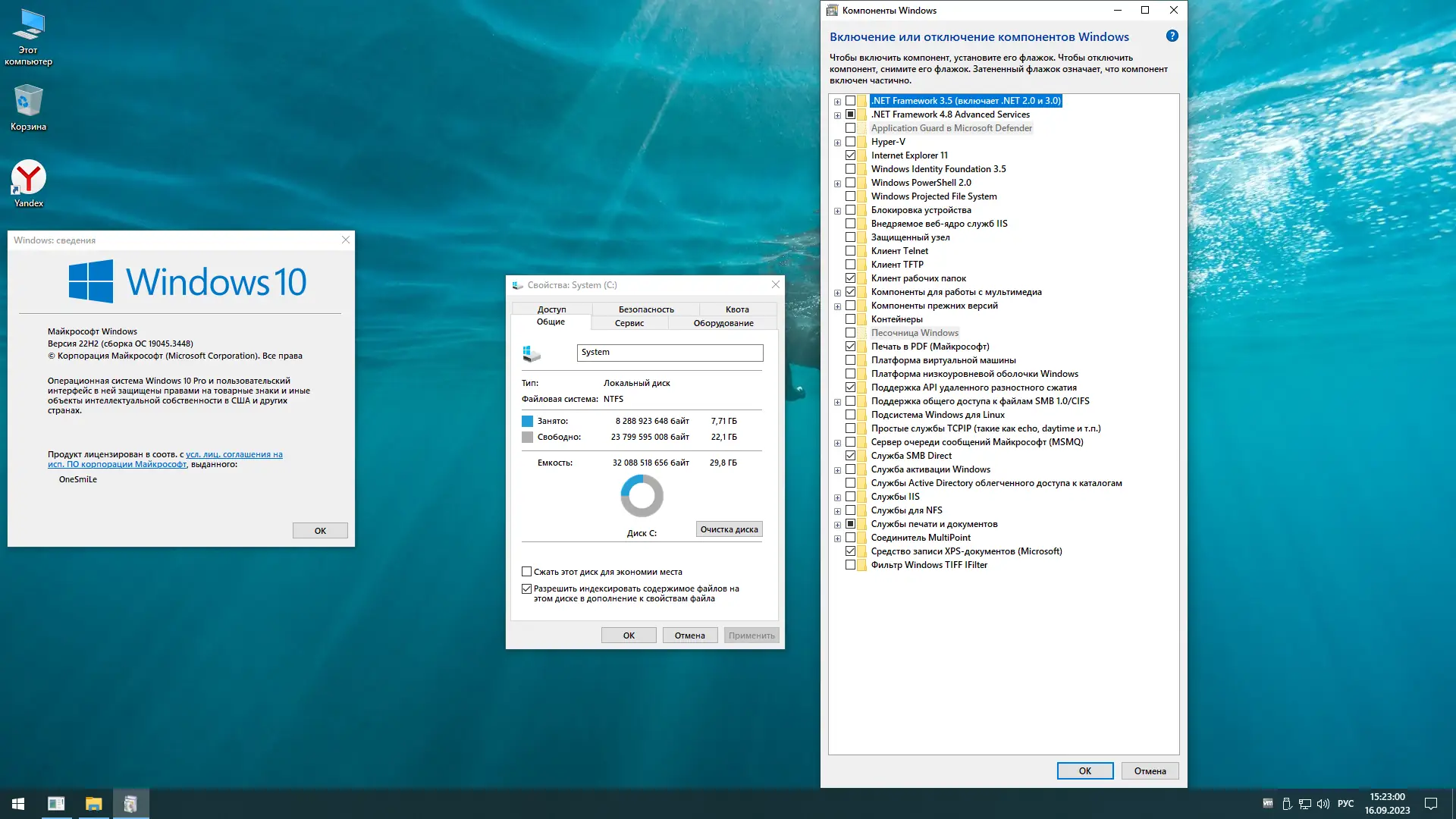 Данная сборка операционной системы создана на базе оригинального образа ru-ru_windows_10_business_editions_version_22h2_updated_aug_2023_x64_dvd_e7ce6087, что гарантирует её чистоту и совместимость с лицензионным программным обеспечением. Все модерн-приложения, включая Cortana, OneDrive и ContentDeliveryManager, удалены для повышения производительности и приватности. Телеметрия вырезана, а поиск в системе остаётся функциональным, хотя значок поиска скрыт из интерфейса для минимализма.
