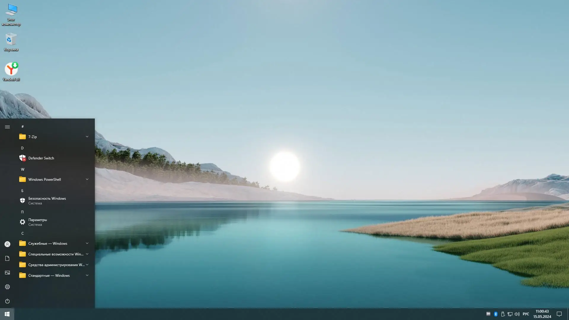 Сборка создана на базе оригинальных образов операционной системы с глубокой очисткой и настройкой под современные задачи. Удалены все современные приложения, включая Edge, Cortana, OneDrive и другие компоненты, которые не требуются большинству пользователей. Поиск в системе функционирует, хотя значок скрыт для чистоты интерфейса. Телеметрия полностью вырезана, что повышает приватность и снижает нагрузку на систему. Образ упакован в формат ESD с использованием инструментов DISM, что позволяет сохранить целостность и уменьшить размер дистрибутива. Windows Defender по умолчанию отключён, но его можно активировать через специальный переключатель в меню Пуск — требуется перезагрузка для применения изменений.