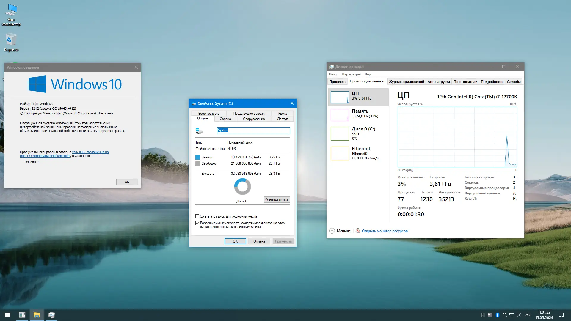 После установки система работает в оптимизированном режиме, где отключены фоновые службы, не влияющие на функциональность. Контекстное меню адаптировано под классический стиль, без лишних элементов. При зажатии клавиши SHIFT в контекстном меню появляются дополнительные опции: установка .cab-пакетов и извлечение содержимого .msi-файлов. Для быстрого доступа к инструментам администрирования в меню «Этот компьютер» добавлены пункты: диспетчер устройств, редактор реестра, конфигурация системы и другие. Автоматическая перезагрузка при сбоях отключена, что позволяет анализировать ошибки. История файлов и папок не сохраняется, обеспечивая приватность. Шрифт интерфейса заменён на Segoe UI Semibold, улучшая читаемость. Windows PhotoViewer включён по умолчанию для просмотра изображений без задержек.