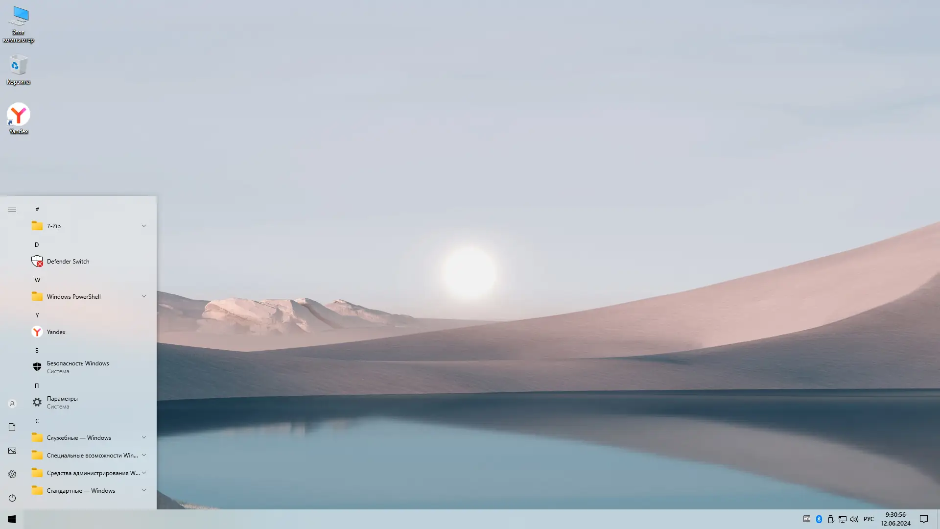 Сборка Windows 10 на основе оригинальных образов с удалением ненужных компонентов, отключением телеметрии и оптимизацией системы для стабильной работы на любом компьютере. Интерфейс очищен от модерн-приложений, включая Edge, Cortana и OneDrive. Поиск функционирует, хотя его значок скрыт. Защитник Windows отключён по умолчанию, но может быть активирован через специальный переключатель в меню «Пуск» с последующей перезагрузкой системы.