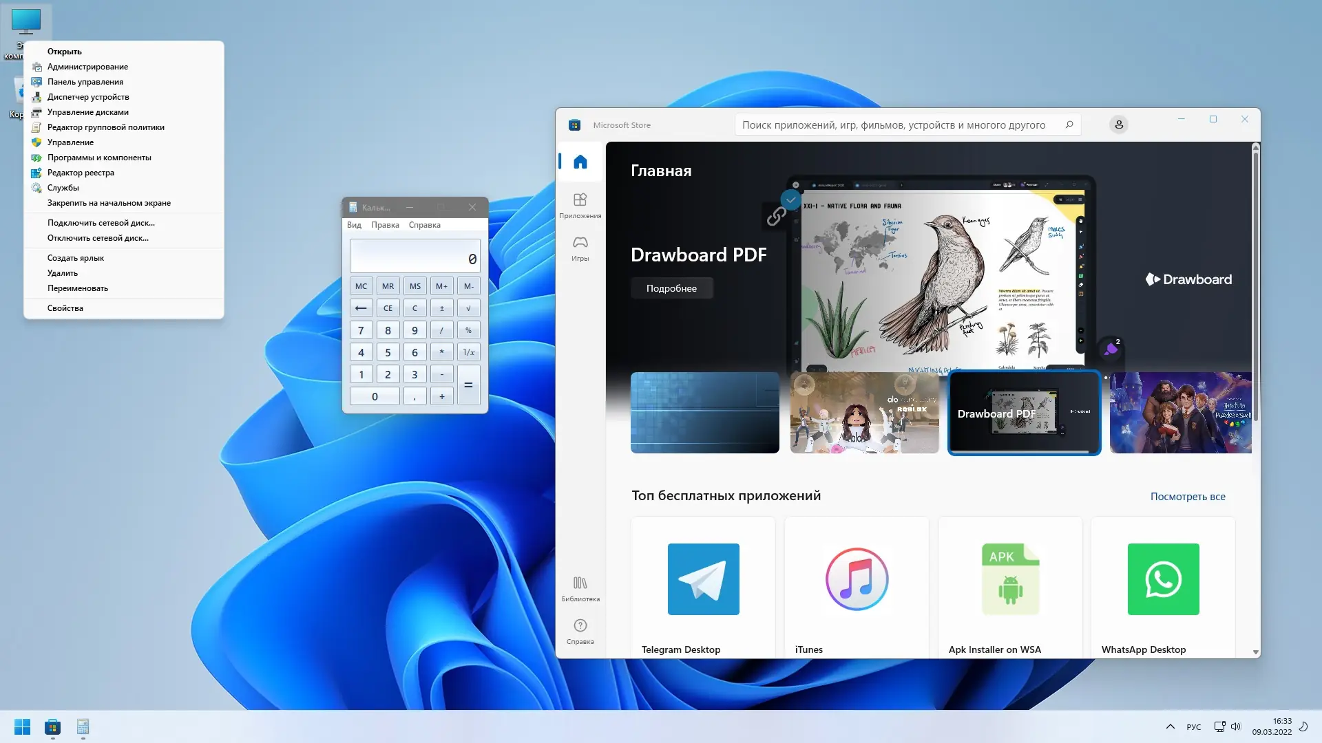 После установки система готова к использованию без дополнительной настройки. Поиск в системе функционирует, хотя значок скрыт из интерфейса — его можно вернуть через параметры. Для восстановления магазина приложений необходимо открыть терминал и выполнить команду wsreset -i, после чего магазин автоматически переустановится. Активация осуществляется через встроенный механизм AutoActivation W10DigitalActivation, который работает в фоновом режиме после установки. Также можно вручную указать ключ продукта через раздел «Активация» в параметрах.