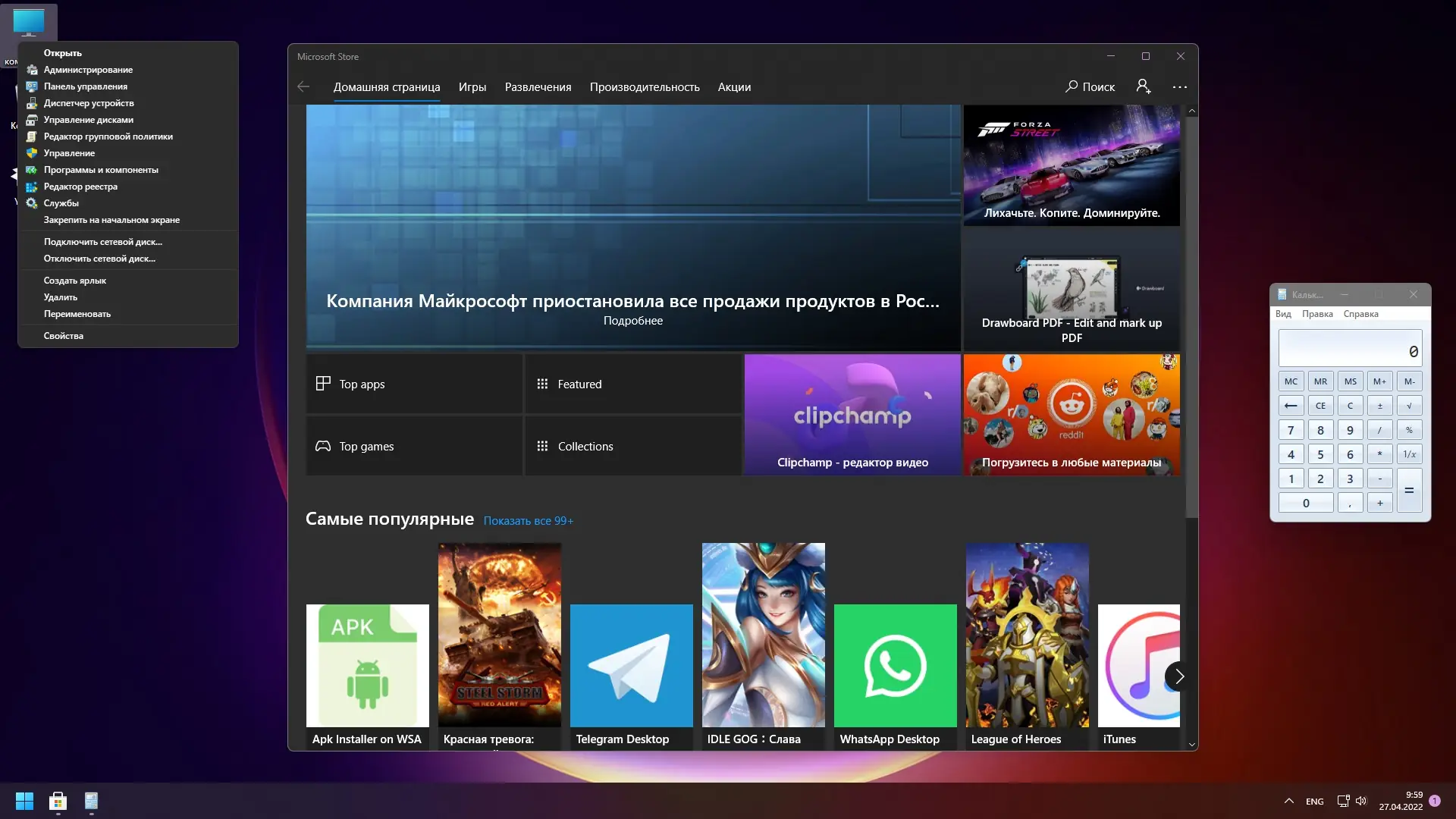 - Классическое контекстное меню возвращено вместо модернизированного
