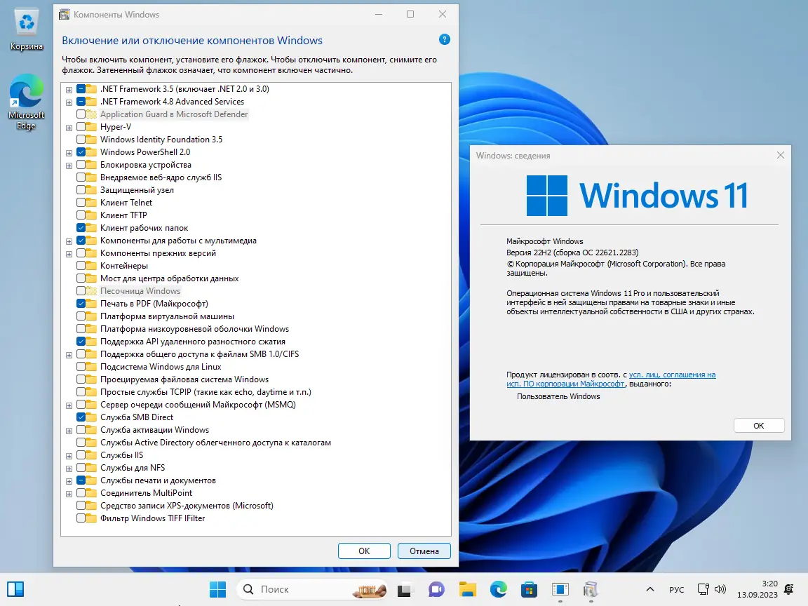- Активирован .NetFramework 3.5, включающий в себя версии 2.0 и 3.0, что важно для запуска устаревших приложений